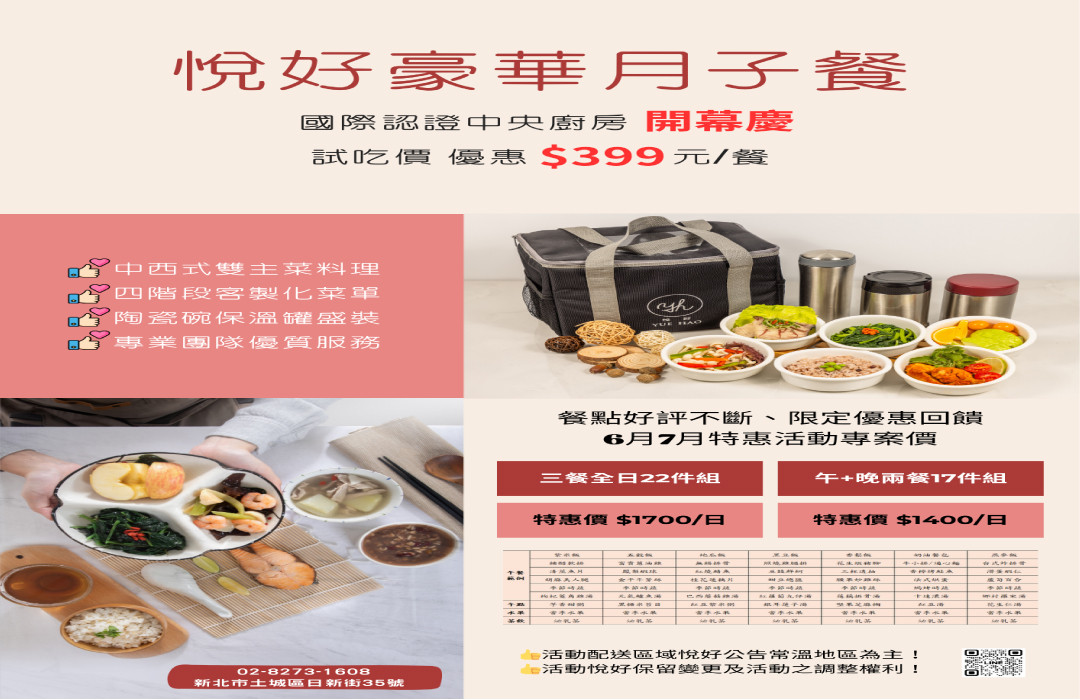 ⚜悅好試吃餐⚜特惠$399元/餐 ⚜悅好豪華餐⚜優惠$1400元/起 ⚜悅好慶開幕⚜訂餐滿額贈尿布